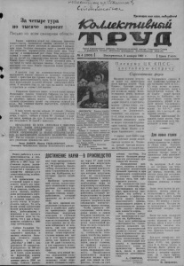 КОЛЛЕКТИВНЫЙ ТРУД 8 января 1961 года, 1 В колхозной парторганизации Дела и планы коммунистов колхоза „Вперед к коммунизму В новом году— к новым успехам Партийное бюро и правление колхоза нынче более серьезно подходят к составлению планов на 1961 год. Для разработки социалистических обязательств создана специальная комиссия. В нее вошли председатель колхоза т. Агеев, секретарь парторганизации т. Пономарев, агроном т.Бережной, зоотехник т. Власова, главный инженер т.Лель, бухгалтер т. Крикау. Уже намечены основные рубежи, которые предстоит преодолеть в предстоящем году. Валовой сбор зерна должен составить 50 тысяч центнеров, или 15 центнеров с гектара. Эта задача вполне подсилу, так как в 1960 году выращен урожай по 14,5 центнера. Решено всемерно бороться за создание прочной кормовой базы. Для этого нынче будет посеяно 400 гектаров кукурузы, каждый из которых даст, предположительно, не менее 350 центнеров зеленой массы. Кроме того, намечено посеять более 600 гектаров однолетних и многолетних трав, 50 гектаров свеклы. Достаток кормов, хороший уход и содержание позволят получить 1500 центнеров мяса, 9550 центнеров молока, или по 25 центнеров в среднем от коровы. Сейчас в артели делается все необходимое, чтобы принятое обязательство было выполнено. Закладывается фундамент под урожай будущего года. Уже на 1000 гектарах задержан снег.Это мероприятие нынче ведут все бригады, так как колхозники воочию убедились в его выгоде. К 15 февраля снег будет задержан на полях повсеместно. Вывозится на пашню навоз. Лекции для хлеборобов и животноводов Большие наметки сделаны по строительству животноводческих помещений. Сейчас укомплектована бригада из 12 человек для заготовки леса. Ей придано два трактора „ДТ-54". К середине февраля бригаде поручено заготовить 550 кубометров леса. Колхоз имеет опыт по сооружению производственных помещений из шлака и цемента. Нынче для такого строительства будет припасено 1500 кубометров шлака, 200 кубометров уже есть. Оживило свою деятельность шиловокурьинское лекторское объединение. В декабре для хлеборобов и животноводов учительница С. И. Ченцова прочитала лекции „Кубинская револю- ция“ и „Воспитание детей в семье и школе“ . Член общества по распространению политических и научных знаний у ч и т е л ь н и ц а В. С. Павленко рассказала о культуре поведения. Сейчас С. А . Куликов готовит международное обозрение „Это не должно повториться". Скоро в клубе будет проведен вечер на тему „Тунеядцам не место в нашей среде". Члены лекторского объединения, коммунисты проводят беседы с колхозниками по ознакомлению с документами Совещания представителей коммунистических и рабочих партий. Интересно, весело Когда секретарь . парторганизации т. Пономарев накануне Нового года посоветовал комсомольцам обсудить на собрании организацию отдыха молодежи, некоторые были в недоумении. Столько дел в колхозе! Не до отдыха. Но собрание все-таки на эту тему состоялось. А вот и его результат. В клубе в нарядном убранстве стоит елка (впервые за сколько лет), игры, танцы, аттракционы... Участники художественной самодеятельности выступили с разнообразным и интересным концертом. В его подготовке деятельное участие приняла учительница С. И. Ченцова. За порядком следили дружинники из числа комсомольцев и несоюзной молодежи. Впервые нынче в школьном дворе для учащи