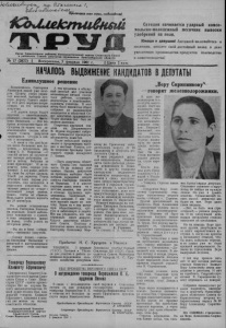 У Ъ 4 £ > . d j m / j folic f u J &’ Oc^J'Z* 77ролетараа всех стран, соединяйтесь1 Сегодня начинается ударный комсомольско-молодежный месячник вывозки ° ? ? > й ю и о г о 'ССов«Г5е?Гтатв«ММУНИСТИЧеСКв£ партин Советского Союза ------------и Раио«ного совета депутатов трудящихся Новосибирской области 1 Воскресенье, 5 февраля 1961 г. | Цена 2 копудобрений на поля. ЮНОШИ и девушки! Активней включайтесь в месячник, вносите свой достойный вклад в дело увеличения производства продуктов полеводства и животноводства! НАЧАЛОСЬ ВЫДВИЖЕНИЕ КАНДИДАТОВ ВДЕПУТАТЫ Единодушное решение В Возвращалась Екатерина Яковлевна домой уже вечером. Шофер умело управлял машиной, выбирая лучшую дорогу. Однако машину то и дело изрядно потряхивало, на что негодовал попутчик. — И дороги скоро будут другими — капитальными, ровными, —пояснила Вкатс- рина Яковлевна. — Эти вопросы всесторонне были обсуждены на только что закончившейся сессии областного Совета депутатов трудящихся. Оттуда я сейчас и возвращаюсь. —А меня и эти дни больше всего беспокоят мои буренки, — продолжала разговор Е. Я. Маркеева. —С семьей ничего не случится: все четверо ребятишек ходят в школу, бабушка за ними присмотрит. И за коровами, знаю, хорошо уха* живают. А все равно, кажется, сама бы лучше сделала. Такой уж характер. Перед отъездом одна корова растелилась, еще находится в родильном отделении. Остальные давали по четыре с половиной литра молока. Боюсь, чтобы не сбавили. Ведь нынче решила надоить по 28 центнеров. Не успела остановиться машина, Екатерина Яковлевна передала домой небольшой чемоданчик с сумкой, а сама направилась прямо на ферму, чтобы успеть на вечернюю дойку. — Вы же в баню собирались,— напомнил попутчик. А тем временем в обширный светлый вал училища механизации начали сходиться рабочие, служащие, пенсионеры и домохозяйки, курсанты училища. В этот вечер было назначено общее собрание по выдвижению кандидатов в областной Совет депутатов трудящихся. Через полчаса зал был заполнен доотказа. Секретарь парткома совхоза им. Дзержинского В. Жуков открывает собрание. Избирается президиум, объявляется повестка. После небольшой информации о предстоящих выборах в местные Советы, слово попросил бригадир тракторного отряда коммунист Г. Божко. —Быть депутатом областного Совета— это большая честь. Ее не всякому оказывают. Нашим депутатом на прошлых выборах была избрана передовая доярка совхоза Екатерина Яковлевна Маркеева. Я и многие сидящие здесь знаем ее с детства, помним, как росла и отлично трудилась прицепщиком, телятницей, а сейчас дояркой. У нее самые высокие надои по совхозу. Знаем ее и как активную общественницу, чуткую и заботливую о людях. Все мы убедились, что она оправдала наше доверие, будучи депутатом областного Совета. Поэтому я предлагаю вновь выдвинуть Екатерину Яковлевну Маркееву по Троицкому избирательному округу № 96 кандидатом в депутаты областного Совета. В зале раздаются дружные аплодисменты. Взявши затем слово работник училища механизации В. Нико- ленко и другие товарищи единодушно поддержали названную кандидатуру, до полнив в своих выступлениях добрую характеристику простой и скромной труженицы фермы. А когда началось голосование, руки всех присутствующих враз поднялись за названную кандидатуру доярки Е. Маркеевой. Немного запоздала на собрание Екатерина Яковлевна, о кото