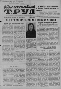 2 КОЛЛЕКТИВНЫЙ ТРУД 3 марта 1961 года, № 28 Встреча Послезавтра состоится голосование за кандидатов блока коммунистов и беспартийных в местные Советы.В агитпунктах идут последние приготовления к дню выборов. Шумно и людно в эти дни и в агитпункте села Благодатного. Заведующая агитпунктом М. Герасименко немало проявила собственной инициативы ивыдумки для оформления помещения. В нем лозунги, плакаты, краткие биографии кандидатов, планы работы с агитаторами и избирателями. На стене висит тетрадь, в которой регистрируются проводимые мероприятия. Вот рукой заведующей сделана еще одна запись: «28 февраля в клубе состоялась встреча кандидатов в областной и районный Советы с избирателями». Об этом следует рассказать подробней. Морозец. Из разных концов села тороиливо спешит народ. Прибыли делегации ииз соседних сел. В президиуме—лучшие колхозники и производственники. На сцене директор школы т. Кардаш. —Нашим кандидатом в дес кандидатами в нутаты областного Совета,— говорит он,—выдвинут Дементий Лукич Шайдоров. Мывсе его прекрасно знаем как бывшего нашего председателя райисполкома, а сейчас первого секретаря Кыштовского РЕ КПСС. Уезжая из нашего района, мы надеемся, он не порвет с нами связи как депутат. Я призываю всех избирателей в день выборов единодушно проголосовать за -Д.' Л. Шайдорова. Его призыв был поддержан горячими аплодисментами. В своих выступлениях избиратели давали наказы. —У нас в соле средняя школа,—говорит преподаватель т. Лобапов,—Однако классы давно не соответствуют новым требованиям обучения детей. В этом году надо построить новую школу. К вам, т.Шайдоров, наша просьба: помочь нам в централизованном финансировании. Еще передайте от нашего имени работникам областного управления культуры, что мы, жители сел, уже давно живем теми же запросами, что и горожане. Пусть профессиональные артисты не забывают к нам дорогу. Колхозницы просили придепутаты слать в село квалифицированного врача. —Чем мы хуже хорошинцев или студеновцев?—говорили избиратели А.Костюков,М.Алексеи ко и другие. — Надо организовать автобусное движение между Благодатным и Карасуком. В этом вы помогите нам. Также тепло встретили собравшиеся и кандидата в депутаты районного Совета, односельчанина Михаила Петровича Васильева, который вот уже несколько лет избирается депутатом и всегда оправдывает доверие. —Тебе,Михаил Петрович,такой наказ,— говорит колхозница т. Темилова,—чтобы для наших детей были ясли и детплощадка, чтобы мы, матери, могли круглый год принимать участие во всех колхозных работах. Не сбрасывайте я впредь со счета озеленение села. Со словами благодарности за оказанное доверие выступили кандидаты в д е п у т а т ы т. т. Д.Л. Шайдоров и М.П. Васильев. --Все ваши наказы постараемся выполнить, —заверили они своих избирателей. Г. Кибенко. Х о р о ш и й и т о г устраивались концерты для учащихся, давались консультации и наставления по таким видам спорта, как лыжи, коньки, волейбол, шахматы. В Троицкой и Чернокурьин- ской школах организованы туристские секции. Все эти мероприятия способствовали развитию художественной и спортивной самодеятельности на селе и укрепляли дружбу рабочих города и сельских тружеников. Вот итог работы бригады: дано 14 концертов, прочитано 13 лекций о международном положении, проведено 8 спортивных соревнований, И к