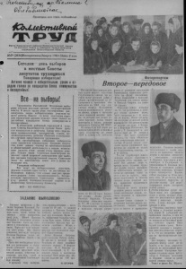 2 КОЛЛЕКТИВНЫЙ ТРУД 5 марта 1961 года, № 29 Отчеты и выборы в колхозах Вот они резервы 22 февраля состоялось отчетное собранне е колхозе „Новая семья". Доклад сделал председатель артели Т. Н. Орлов. В прениях выступило 10 человек. В принятом решении намечены. пути дальнейшего роста экономики колхоза и благосостояния колхозников. Ниже мы печатаем отдельные выступления на собрании. ТОЛЬКО ВПЕРЕД (Из доклада т. Орлова, председателя колхоза) Из года вгод растет наше хозяйство. В 1953 году денежный доход колхоза составил 581 тыс. рублей, а в i960 увеличился почти в десять раз. Большое внимание в хозяйстве уделяется возделыванию Зерновых. В этом хлеборобы добились некоторых успехов. Нынче вкруговую получено по 15,2 центнера хлеба с гектара, что позволило выполнить обязательства перед государством, достаточно выдать зерна на трудодни колхозникам, засыпать добротные семена и припасти фураж. Этот успех не должен вскружить нам головы. Наша задача—нынче вырастить стопудовый урожай. Несколько хуже дела в животноводстве. План, воспроизводства стада, за исключением коров, не выполнен. Особенно медленно развивается овцеводство. Всего на 35 овец в год увеличивается отара за последние семь лет, хотя есть все условия для более значительного роста. А вот и причина. Отдельные колхозники нерадиво относятся к уходу за скотом. В результате—падеж животных. А это сокращает выход продукции, уменьшает доход. ^ Не всегда продуманно расходуются средства. Подчас покупаем машины, материалы и оборудование, без которых вполне можно обойтись или которые не оправдывают себя. Например, никакой пользы пока не дали пресс-подборщик и тюко- подборщик. Отрадно отметить, что колхоз обеспечен необходимыми производственными помещениями.Теперь на очереди культурно бытовое строительство: детские ясли, кинотеатр, радиофикация села. Растет благосостояние колхозников. По сравнению с 1953 годом вес трудодня увеличился в шесть раз. Почти все колхозники переселились в новые добротные дома. Имеются возможности нынче значительно увеличить продажу государству зерна, молока, мяса, яиц. Водитель Не сразу приходят к человеку уважение и почет. Трудоми добрым отношением к людям заслуживают такой чести. Молгет быть, об этом Николай Михайлович Баулин и не думал, поступая на работу в автохозяйство, но только почему-то его сразу заметили и скоро он оказался на хорошем счету. Есть за что уважать этого человека. Для всех шоферов хозяйства он является примером. Нет слов, трудна шоферская жизнь. Приходится стойко выносить все тяготы и неудачи дорожной езды. Распутица ли, пурга ли—в иуть. А путь у Николая Михайловича далекий: Веселовка, Краснозерское и даже Довольное. Доставляет он туда на своем бензовозе горючее. На 230 процентов выполнил план прошлого года, сделав на своей автомашине более 50 тысяч километров и доставив 1700 тонн горючего. Несмотря на трудности авН. Баулин томобильного движения зимой, Н. В. Баулин в январе месячное задание по тоннамвыполнил на 280 процентов и на 164—по тонно-километрам. В бережливых руках машина выглядит, как новая. А ведь прошло семь лет с тех пор, как он сел в кабину этого ЗИСа. Передовой шофер, активный общественник. Онизбран членом месткома, является председателем комиссии потехнике безопасности иохраны труда. Состоит в комиссии по проверке технической исправности машин