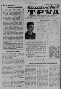 2 . IS o 6 U )& Ua ) ^ (J C ^ u a u J u jUa^lS (U & JL^ Пролетарии всех стран, соединяйтесь} iOyUudcttMiHsui Орган Карасукского райкома Коммунистической партии Советского Союза и районного Совета депутатов трудящихся Новосибирской области № 35 (2837) j В о скр е сен ье , 19 марта 1961 г. f Цена 2 коп. Весна пришла— торопись, хлебороб! Весна... Какое странно манящее, и ^ чудесное, и зовущее в слове—весна! И как прекрасна сама она—веснах Приходу ее радуется все живое. Приветствуют наступ ление весны горожане, радуются ей полярники, ждут ее жители степей, горцы... Особое значение имеет весна для тружеников села. Под благодатными лучами солнца тает снег, обнажается кормилица- земля и ждет, чтобы принять в себя драгоценные зерна, а осенью вознаградить труд хлеборобов обильным урожаем. Пришла весна. Торопись, хлебороб! Дел у тебя в эту пору непочатый край. Еще раз просмотра, вся ли подготовлена техника, при этом—без скидок на „мелочи“. Продуманы ли вопросы создания нормальных культурно-бытовых условий для механизаторов?Ведь механизатор—центральная фигура на весеннем севе. От их труда зависит успешное проведение этой компании, и о них надо позаботиться. Большую работу предстоит проделать с семенами. Некондиционные надо срочно заменить .Склады проветрить, позаботиться, чтобы туда не попали талые воды. Наступает пора протравливания и воздушно-теплового обогрева семян. На период сева должен быть составлен четкий рабочий план, продуманы вопросы массово-политической и культурно-воспитательной работы. Много весен подступало к колхозным и совхозным дворам. Все они приносили новые заботы, новые радости. Но ни одной из них не сравниться с нынешней. Ее прих о д—это начало великого похода за небывалый подъем сельского хозяйства, за выполнение величественных задач, поставленных перед народом январским Пленумом ЦК КПСС. В этом походе достойное место должны занять карасукские хлеборобы. Их долг и почетная обязанность—вырастить такой урожай, чтобы с гордостью можно было рапортовать XXII съезду КПСС о достойном вкладе в дело строительства коммунизма в нашей стране. Последние пригволнтеоие Ранняя в этом году вес- сейчас в хозяйстве! При на. Она возвестила о своем помощи его можно легко приходе в половине марта, свозить навоз и перегной Все сильнее пригревают в бурты, чистить силосные землю теплые лучи солнца, траншеи, оседая, тает снег на полях. Скоро хлеборобы артели Однако Федору Штумпфу „Вперед к коммунизму" вы- скоро придется оставить ведут тракторы на поля, кузницу. Он ведь кукуру- начнут свозить прицепной зовод. С напарником Васи- инвенгарь на полевые ста- лием Липовка они взяли ны. А сейчас идут послед- обязятел!СТво получить по ние подготовительные ра- 350 центнеров зеленой мас- боты. сы кукурузы с гектара. Целыми днями хлопочет —Дело привычное, опыт Красный уголок шестой фер- рову своей группы по 110 лит- тической работы среди живот- народ во дворе центральной есть, энтузиазма для дости- мы совхоза им. Дзержинского ров. Думаем " в этом месяце поводов рассказали в своих ," ' anLfiu г , " " а PDf' QO'r жения цели достаточно,—за- заполнили животноводы. Они получить в среднем на корову выступлениях секретарь парВыращиванием картофеля занимаются у нас все хозяйства района. Однако этой культуре недостаточно уделялось внимания. Возделывание ее обычно не закреплялось за определенными людьми. Садят о