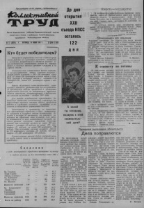 Пролетарии всгех стран, соединяйтесь! jCbUueJcrnu&mu Орган Карасукского райкома Коммунистической партии Советского Союза и районного Совета депутатов трудящихся Новосибирской области №72 (2874) I ПЯТНИЦА, 16 ИЮНЯ 1961 Г. | ЦЕНА 2 КОП' Кто будет победителем? Областное управление совхозов и обком профсоюза рабочих и служащих сельского хозяйства и заготовок разработали и объявили условия социалистического соревнования звеньев по выращиванию в совхозах высоких урожаев кукурузы и сахарной свеклы. Победителями соревнования будут считаться механизированные звенья, которые получат с закрепленной площади в 100—150 гектаров кукурузы не менее 350 центнеров зеленой массы с каждого гектара и сахарной свеклы с площади в 50 гектаров—не менее 275 центнеров корней с гектара. Итоги областного социалистического соревнования звеньев по урожайности будут подводиться президиумом обкома профсоюза и областным управлением совхозов по материалам, представленным трестами, администрацией и рабочкомами совхозов не позднее 1 ноября 1961 года. Д ля звеньев—победителей соревнования, добившихся наивысших показателей, учреждено два переходящих красных знамени обкома профсоюза рабочих и служащих сельского хозяйства и заготовок и областного управления совхозов. Трактористу и машинисту за качественную трехкратную обработку в двух направлениях кукурузы и сахарной свеклы установлена доплата в размере 50 процентов от основного заработка на обработке этих культур. Д ля звеньев, добившихся со всей закрепленной площади высокого урожая кукурузы, учреждены денежные премии', при получении урожая не менее 350 центнеров с гектара—40 рублей, не менее 425 центнеров—70 рублей, не менее 500 центнеров—100 рублей. При получении урожая сахарной свеклы по 275 центнеров с гектара—50 рублей, 325 центнеров— 70, 350 центнеров—100 рублей. Установленные премии будут распределяться среди членов звена в процентном отношении к заработку. \1У и Ц 1 Д А А Г и Ц У > А Г Щ |Л А > У ¥ У У У > У ^У У У У У У У У * |Г » * 1 Г |* Л Л Л * Л * * * * * ■ * * * m С в е д е н и я о ходе междурядной обработки пропашных культур и надоях молока за 3-ю пятидневку июня 1961 г Колхозы и совхозы Обработано кукурузы в одном направлении (га) Обработано картофеля в одном направлении (га) Обработано подсолнечника в одном направлении (га) Надоено молока на коро- ву(литр.) Им. Тельмана ■— «Маяк Ильича» «Вперед к коммун.» 90 Им. Куйбышева «Новая семья» 50 Им. Жданова — Итого по колхозам 140 Им. Дзержинского 217 «Октябрь» 719 Студеновский Хорошинский 482 Итого по совхозам 1418 Всего по району 1558 92 92 92 100 105 46 251 30 95 183 308 559 42.7 44.5 45.6 47.8 48.1 40.0 45.0 39.7 43,5 45.7 47.0 43.2 44.0 До дня открытия XXII съезда КПСС осталось 122 д н я Шерсть—государству В заготконтору райпотребсоюза ежедневно поступает из хозяйств района ценное сырье для промышленности—шерсть. С овцеводческих ферм колхоза имени Тельмана, где в настоящее время полным ходом идет стрижка овец, поступило 65.центнеров золотого руна. 41 центнер шерсти сдал государству совхоз имени Дзержинского, 29 центнеров—колхоз „Маяк Ильича1' и 12 центнеров—колхоз имени Жданова. Сдача шерсти государству продолжается. П. Сасина, статистик заготконторы. Отказалась Елизавете Григорьевне Ха- тюшиной давно пора па заслуженный отдых, но она все еще приносит немалую пользу артели. В прошлом году они вместе с дочерью Тамарой выходили до шестимесячного возраста сто 