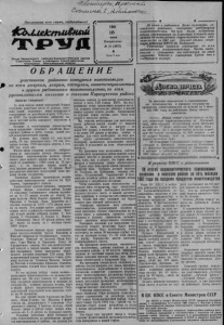 Пролетарии всех стран, соединяйтесь! ^ 40кШкти&нш I ■а Орган Карасукского райкома Коммунистической партии Советского Союза и районного Совета депутатов трудящихся Новосибирской области 1961 18 июня Воскресенье № 73 (2875) ★ Цена 2 коп. ш \ ш ^■■1111111«111»М11111И111*1И11В11111И1^ 16 июня в районном Ломе культуры состоялось районное совещание работников животноводства. На нем были подведены итоги соревнования за 5 месяцев и определены задачи по выполнению социалистических обязательств за 1961 год. Доклад сделал секретарь райкома КПСС т. Кабицкий. Совещание приняло обращение ко всем работникам животноводства. Часть мате- риалов с совещания мы публикуем на этой странице. Отчет о совещании будет дан в следующем номере. О Б Р А Щ Е Н И Е участников районного совещания животноводов ко всем дояркам, доярам} пастухам, зооветспециалистам\ и другим работникам животноводетва} ко всем руководителям колхозов и совхозов Карасукского района Дорогие товарищи! Со всех концов нашей необъятней Родины поступают радостные вести об успехах советских людей, поднявших знамя всенародного соревнования за достойную встречу ХХИ_съез- да КПСС. Это патриотическое движение вызвало могучий поток народного творчества и инициативы. Большие и ответственные обязательства взяли труженики сельского хозяйства Карасукского района в честь съезда нашей родной коммунистической партии. Мы должны дать стране 4,5 млн. пудов хлеба, 36 тыс. центнеров мяса, 181 тыс. центнеров молока, 1700 центнеров шерсти, 2 млн. 800 тыс. штук яиц. Многие наши товарищи успешно набирают темпы по выполнению взятых обязательств. Работники животноводства колхоза «Новая семья» дали прирост надоев молока за_ 5 месяцев по сравнению с 1960 годом на 31 процент, а на каждую корову надой в этом колхозе увеличился на 69 литров. Колхоз досрочно выполнил полугодовой план продажи молока государству. Увеличили валовое производство молока работники животноводства колхоза им. Куйбышева, Хорошинского совхоза. Значительных успехов добились передовые бригады, фермы, отделения района. Доярки 12 отделения Хорошинского совхоза надаивают по 11—12 литров молока на корову, доярки колхоза «Маяк Ильича» Дридигер Елена Ивановна и Бальцер Эмма Андреевна за 5 месяцев надоили по 1350—1370 литров молока на корову. Эти доярки прочно удерживают первое место в районном соревновании. Высоких надоев молока добились доярки Т. Бондарева, Е. Охременко, У. Ермаш, А. Морозова, Райковская. Около 50 доярок района имеют надои на корову за 5 месяцев свыше 1000 литров. Замечательные образцы труда показывают наши пастухи-скотники братья Владимир и Николай Смирновы из Студеновского совхоза, Гладченко Николай из колхоза «Маяв Ильича», Турко Виктор и Тарасенко Павел из Хорошинского совхоза. Эго они своей постоянной заботой о надоях молока помогают дояркам наращивать темпы выполнения обязательств. Достойно встречают XXII съезд Коммунистической партии Советского Союза птичницы колхоза им. Тельмана Наталья Петровна Власова и Александра Ефимовна Семенова, завершившие годовой план продажи яиц государству. Но эти трудовые победы наших маяков— передовиков животноводства—не должны успокаивать нас. Мы ясно сознаем, что производство продуктов животноводства и продажа их государству, особенно продажа молока, идут в нашем районе неудовлетворительно. Государственный полугодов