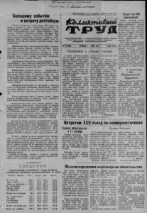 (ro o .e sH tp cA 'f м р / Большому событию и встречу достойную 104 дня осталось до съезда партии. Вся страна деятельно готовится к этому историческому событию. На предприятиях и стройках, в колхозах и совхозах—всюду с новойсилой поднимается волна социалистического соревнования. Рабочие и служащие, сельские труженики пересматривают ранее принятые обязательства, намечают меры более полного использования внутренних резервов производства, чтобыс успехом взять рубежи третьего года семилетки. В эти дни, как никогда, рождаются новый почин и инициатива. Замечательно несут предсъездовскую вахту железнодорожники станции Карасук-I. Недавно они вновь подсчитали свои возможности и пришли к выводу, что десятимесячный план погрузки выполнят за два дня до открытия съезда; к 13 августа полностью подготовятся к перевозкам зерна; а к 15 октября подготовят станционное хозяйство к работе в зимних условиях. Пересмотрели обязательства железнодорожники ОВЭ, мясокомбината. Здесь наметили конкретные меры по оказанию шефской помощиколхозам и совхозам в выполнении решений январского Пленума ЦК КПСС. Инициаторами досрочного расчета с государством по продаже продуктов сельского хозяйства выступили колхозники артели «Новая семья». К открытию съезда они пообещали выполнить годовые обязательства перед Родиной по поставкам зерна, мяса, молока, шерсти, яиц. Крепко держат свое слово чернокурьинцы. Можно надеяться, что онине подведут. Небывалый подъем царит на колхозных и совхозных лугах, на кукурузных плантациях. Механизаторы стремятся вдоволь припасти сена для общественного животноводства, вырастить как можно больше зеленой массы на силос. Многие труженики города и деревни готовят личные трудовые подарки съезду. В авангарде идут ударники и члены бригад коммунистического труда. Между тем еще не все цеха, участки, бригады, фермы пересмотрели ранее взятые обязательства и приняли новые, повышенные. К их числу можно отнести СМУ «Зап- сибхлебостроя», молочноконсервный комбинат, колхоз им. Куйбышева. Здесь партийные и профсоюзные организации недостаточно проявляют заботы о рациональном использовании машин и оборудования, сырья и материалов, о быстрейшем приведении в действие имеющихся резервов. Пролетарии всех стран, coed v кt i n ссь! 4 3 к1ае1спш£нш Орган Карасукского р айкома Коммунистической партии Советского Союза и районного Совета депутатов трудящихся Новосибирской области №81(2883) < ПЯТНИЩ, 7 ИЮЛЯ 1961 Г. | ЦЕНА 2коп. Комбайны к уборке готовы В цехах машинно-тракторной мастерской Хорошинского совхоза кипит работа. Механизаторы готовят хлебоуборочнуютехиику. Комбйаны уже полностью подготовлены. Из 50 комбайнов 16 «СК-3» новые. Сейчас комбайнеры трудятся на ремонте жаток, подборщиков и другой хлебоуборочной техники. Среди ремонтников много опытных комбайнеров. Дмитрий Ершов, Иван Ульман, Иван Дьяченко придирчиво принимают изготовленные детали, узлы, сами ведут ремонт, что называется, на совесть. Вот почему в уборку их машины не стоят на полосе, весь сезон работают исправно. Нельзя обойти молчанием труд механизаторов Ивана Филиппенко, Евгения Шмакова, Владимира Киселева. Это прямо-таки универсалы. Иван Михайлвоич Филиппенко четыр- мя профессиями владеет. Он и слесарь, и электрик, и медник, и жестянщик. Сядет за руль машины—и тут на своем месте. Дневвые задания н