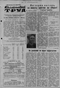 H't-re v r t& s d с л э и е и - PU? X ^дь/ёссЪ и& С +а T " ПРОЛЕТАРИИ ВСЕХ СТРАН, СОЕДИНЯЙТЕСЬ! 4СЫЛмктиВнш> Ни з е р н а по т е рь , ни минуты простоя на уборке! Т р и н о р м ы не предел Орган Карасукского райкома Коммунистической партии Советского Союза и районного Совета депутатов трудящихся Новосибирской области №97 (2899) 1ВОСКРЕСЕНЬЕ, 13 АВГУСТА 1961Г. ; ЦЕНА 2 коп, Не терять урожай на полосе Один за другим но овся- подбирать нельзя, да, мол, и С красным вымпелом Уж е давно п и т а л и небо в РазгаРе жатва. На всех Увеличивается поток зер- и землю сумерки! а г р е г а т "Олях отделений Хороший- на идущий в закрома Роди- кпмбяйнепя. Гп-рпяна Голен- ского совхоза дружно идут ны. По сдаче хлеба лучшие ко ва и Т о а ктооиста Леони- уборочные работы. Высокие результаты имеет отделе- да Максюты не покидал образцы труда показывают ш е Д.„Писклова, отгрузив- полосу. И только тогда хлеборобы, затихли моторы, когда вре- Василий Миндибаев ку- мя перевалило далеко за курузовод. Он вырастил хо- полночь. На утро учетчик рошу10 кукурузу. Но пока подсчитал, результат заме- уборка её не началась он нательный: три нормы. На косит хлеба, ежедневно вн- лице Степана Голенкова полная до трех норм. шее 1200 ц зерна. А. Якименко. и о ДРУ1ИМ uu и ой ии и ш дмн о выпажение Но Хороши результаты и у ному полю движутся само- это неплохо. Допускают по- выражение, пи и г Семёновича Мопоза уппныр ' комбайны ГК-3-* тепи и комбайнеп Г Рршр- это ■л-,,я комбайнера не пре- Ивана Семеновича мороза ходные комоаины „ск 6 . тери и комоаинер 1 . кеше q„ 1)Я вт01)ой лень еше Он за четыре дня на „С-6“ Ови ведут обмолот валков, тов, В. Хамрачев и В. Мак- больше увеличил выработ- скосил 103 га. От него не отстают Виктор Бергер и Неплохие овсы выращены сюта. - в артели „Новая семья“ . В О допущенных потерях ку, скосил оэ га. о м„ тпп луквин пепвый же лень поступило няглялно говопит тякой Добрыми делами встреча- Виктор дуквин первый же день поступило наглядно говорит такой ппелстояший е-ьечл На днях передовикам на ток первой бригады око- факт. Комбайнеры Г. Ре- ^ о о о б ы С Голен жатвы за достигнутые уело 500 центнеров зерна. шетов и В. Хамрачев за хлеоорооы с . i олен ------------- ---------— ----- ----- Горожане на уборке —Ну, как, ребята, настроение? -Рабочее, — отвечает за Радуются ВСЕ большому круг набираете бункера до о в и Т ж в 'с т о с а ^ в пела ^Г 'благодарсТвеннте BMS ||втР А.пов. ^р1„У„,ю НОвоПл0оСс Г РЧ"тИо S наРсвУал 4 0 0 г а Упш е „ицы .Л" письмо „ т вмени партийной шаг, то пучок неподобран- 17 ц. Разница немалая. И 3. Захарчук. ных колосьев. Немало идет это потому, что Будко и зерна вместе с половой. Максюта стараются полу- Остаются необмолоченные чить более чистое зерно, зерна и в соломе. На за- но вместе с половой ухо- мечание агронома Г. Муха- дят малоценные отходы и медчина комбайнер М. Буд- вместе с ними часть ценно- ко отвечает, что лучше го зерна. П. Петров. письмо от имени партийной Мысли товарища дополняет организации, рабочкома и Алексей Мусанов: администрации совхоза. /■ V W \^ > V W » ^ W W W W W V W V W V W V W ^ С В Е Д Е Н И Я о ходе уборки зерновых,заготовке кормов на 12 августа и надоях молока за 2-ю пятидневку августа Скошено Надоено мок о л х о зы и сов х о зы зерновых (проц.) Застоговано сена (проц.) лока на ко- рову (в л.) Им. Тельмана 2,7 34,2 38 «Маяк Ильича» 26,8 31,2 40 «Вперед к коммун.» 25,8 35,0 40,1 Им. Куйбышева 9,1 40,5 39,3 «Новая семья» 6,8 63,5 36,6 Им. Жданова 0,7 18,3 32,9 Итого но колхозам 15,1 38,3 38,2 Им. Дзержинс