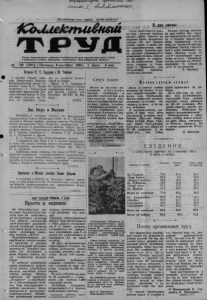 2 ЧР КОЛЛЕКТИВНЫЙ ТРУП, 8 сентября 1961 года, М 108 УСИЛИТЬ ВЛИЯНИЕ НА МЕСТНЫЕКОМИТЕТЫ Во всем показывать пример . Каждый механизатор или животновод редко пройдет мимо на центральной усадьбе Хорошинсвого совхоза, чтобы не завернуть к «окну» сатиры. Не скрывая любопытства, они рассматривают каждый свежий номер выпуска. Орган издания его—профсоюзная организация. В острых, метко бьющих в цель критических куплетах и карикатурах редколлегия бичует лодырей, прогульщиков, пьяниц. Молодой шофер Анатолий Козлов хватил хмельного и врезался машиной в телеграфный столб. В пьяном состоянии сел за руль автомашины шофер Жакаев. Не избежать бы и ему беды, если не предупредили её вовремя. «Окно» сатиры не только фиксирует недостатки. Оно указывает пути их устранения, учит на образцах хорошего, воспитывающего. Большая заслуга в работе стенной печати и особенно сатирического отдела принадлежит завучу школы И. В. Мартыко. Он не замыкается в стенах школы, аккуратно выполняет общественное поручение. Об успехах хлеборобов своевременно извещают экстренные выпуски «Молнии». Первенство но итогам социалистического соревнования занял коллектив бригады М. А. Па- холкипа, на 70 процентов выполнивший обмолот хлебов. Лафетчики Василий Лагерев, Михаил Баранов, Иван Вайман убрали по 500—600 гектаров хлебов, Их ежедневная выработка—две нормы. Не посрамили себя и комбайнеры Владимир Загреба, Яков Райхель, Эдуард Якоб, Федор Демченко. Их трудовой день заканчивается двойным выполнением норм. Об этих передовиках часто сообщается в «Молниях». Рабочком не ограничивает свою работу регистрацией фактов высокой выработки механизаторов. Члены комитета выезжают на поля.Они вручают передовикам уборки благодарственные письма партийной, профсоюзной организаций и дирекции совхоза, переходящие красные вымпелы, словом, руководят соревнованием. На обсуждение заседаний комитета выносятся самые разнообразные вопросы. В начале уборки поступали в профсоюзную организацию сигналы о плохой работе столовой. И вот комитет слушает отчет председателя Хорошинского рабкоопа т. Кривцова о работе столовой. Вскоре после этого общественное питание наладилось. Увеличен был. обслуживающий персонал в столовой составлен график обслуживания населенных пунктов разъездными лавками. Вовремя обсуждались вопросы об охране труда и технике безопасности, о работе редколлегии, о медицинском обслуживании населения, о работе детских яслей. В составе рабочего комитета —лучшие производственники, опытные специалисты сельского хозяйства. Большую активность проявляет член рабочкома главный ветврач т. Белянин. Он проводит взаимопроверки по выполнению взятых обязательств животноводами, по профилактическо-лечебным мероприятиям. А когда вышел в свет исторический документ —проект Программы партии, т. Белянин стал на профсоюзных собраниях отделений знакомить с ними рабочих. Многогранна деятельность профсоюзной организации. Какой бы вопрос ни взял, каждый касается профсоюза: и техника безопасности, и механизация, и быт рабочими производство. Однако не все гладко в работе рабочкома профсоюзной организации. В своей деятельности он должен опираться на работу местных комитетов отделений. Но здесь не без погрешностей. Кроме второго отделения (председатель месткома И. Дриждь),пятого (В. Булава), четвер