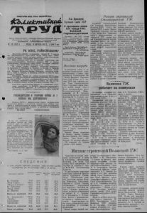 2 КОЛЛЕКТИВНЫЙ ТРУД ДОБРЫМ СЛОВОМ И ОСТРЫМ ПЕРОМ — Внимание, внимание! Говорит местный радиоузел. Слушайте вести с полей... И по всем радиоточкам села Благодатного разносится голос диктора, сообщающий о ходе полевых работ в колхозе им. Тельмана. Такие вести передают через каждые три дня. На току, где особенно многолюдно в эти дни, можно увидеть витрину „Новости дня". На ней отражаются итоги работы, лучшие труженики артели, показатели о ходе уборочной страды. И, конечно, не обходят стороной тех, кто хочет укрыться за спиной своих товарищей. Неприятно было попасть сюда молодой девушке Надежде Бляхер, которая больше сидит на ворохе зерна, чем работает. Через каждые пять дней на полевых станах появляется свежий номер „Боевого листка", а через неделю— „Стенная газета". Всюду на бойких местах уборочной страды можно встретить лозунги, плакаты, картины. Имеются и специальные витрины для газет. Для передовиков здесь всегда найдется вовремя доброе слово, а для лодырей и бракоделов—острое перо. Часто можно встретить на току или просто в поле заведующего Благодатским сельским клубом Н. Кура- чева и заведующую библиотекой М. Герасименко. Эго они готовят материал для местного радиоузла, выпускают стенные газеты и боевые листки, проводят беседы с колхозниками.М. Герасименко, как лучший агитатор,была занесена на районную Доску почета. Победителю— премия Спорится работа на пойях колхоза «Вперед к коммунизму». Механизаторы торопятся быстрее управиться с жатвой хлебов. Горячее соревнование разгорается между уборочными агрегатами. Регулярно каждую пятидневку подводятся итоги борьбы за урожай. Победителям вручаются красные флажки и денежные премии. За последние пять дней первое место среди уборочных агрегатов занял комбайнер Николай Петрович Сарапулом. Он на «СК 3» подобрал за пять дней 93 га хлебов, вместо 70 по норме. А всего на счету у Н. Сарапулова около 350 га подобранных хлебов. За хорошую работу партийная организация и правление артели вручили ему переходящий вымпел и денежную премию. А. Полуэктов, секретарь парторганизации колхоза. Хозяева тока В Якутской АССР созрел богатый урожай хлебов. Идет жатва. В Якутском совхозе механизаторы отец и сын Марченко ежедневно комбайном СК-3 убирают до 20 гектаров посевов. НА СНИМКЕ: комбайнеры Владимир Марченко (слева) и Гавриил Федорович Марченко. Фото В. Тетерина. Фотохроника ТАСС. Близится к концу уборка. Коллектив нашей бригады должен сдать государству 4 тысячи центнеров хлеба. Уже сдано три с иоловнной. На ток непрерывно поступает зерно. Среди комбайнеров ведущее место занял Константин Белетков. Он заканчивает убирать третью сотню гектаров. Коллектив поселка Октябрьского небольшой. Без посторонней помощи трудно обходиться в уборку. Поэтому колхозники рады приезду горожан. 12 человек под старшинством Анатолия Кузьмина выполняют все работы по очистке, разгрузке и погрузке зерна. И часто в шутку и всерьез мы называем пх «хозяевами» тока. Они работают и отдыхают на току, где для них ус тановлен вагончик. Ф. Шевцов, учетчик 3 бригады артели „Вперед к коммунизму." 13 сентября 1961 года, № 110 Сообщение ТАСС В соответствии с планом научно - исследовательских и опытно-конструкторских работ по дальнейшему освоению космического пространства, советскими учеными и конструкторами подготовлены к испытанию более 