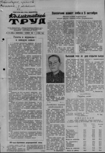 1 октября 1961 года, М 118 КОЛЛЕКТИВНЫЙ ТРУД 3 СТРАНИЦА ВЫХОДНОГО ДНЯ ГОЛОС НА ТЕРН Прочитав в газете про себя, бабка Меланья, когда я собрался идти на работу, подошла ко мне неслышно и под самым ухом выпалила: — Стой! Я уж думал, беда какая случилась, но хитро сощуренные ее глаза словно говорили: «Эх, ты...» Бабка преградила мне дорогу и спрашивает высоким фальцетом: — Это ты зачем меня в газету пропечатал? Как не убеждал я ее, что в том ничего нет плохого, бабка твердила свое: — Больше ничего не расска- жу. — Ну и ладно, коли так, — ответил я.— Разрешите пройти? — Погоди, —остановила она меня.—Шуток не понимаешь. На безмятежном лице бабки вдруг появилась печаль, глаза заблестели, и от этого стали походить еще более на маленькие озерка. На щеку но глубокой морщине скатилась скупая слеза. Меня тронула перемена ее лица. — Я, наверное, очень виноват?— спросил. — Очень. За то, что рас- чувствовал меня, старуху. Вот . посмотри—и бабка вынула из- за пазухи, обмотанное белым шелком, что-то наподобие четырехугольника. — Так это же комсомольский билет!— воскликнул я, когда развернул материю. — Как видишь. Сыночек мой на фотографии, Шурка, значит. Только теперь я вспомнил, что никогда не спрашивал ее о прошлом. Не может же женщина на старости лет быть вот такой одинокой... — Я бы не рассказывала тебе об этом,— говорила бабка Меланья,— да вот вчера по радио вроде бы говорили, что этот... ну, помоги припомнить. - К т о ? — Да который войной нам грозит. Кеннеди, Раск, Монтгомери, Дв Голль, Аденауэр? — Вот, вот, Заденауэр,— обрадовалась она, что так быстро удалось отыскать среди множества агрессоров самого нужного.—Говорят, ему за восемьдесят, а войной на нас будто бы собирается. Тогда-то я снова вспомнила о сыночке. Ему и 17 не было. Жили мы на Украине. Как только зашли немцы в село в 1941 году, их самый старший бандит явился к нам в тот же день. Гергочет, а я ну ничего не понимаю. Чуть не застрелил, поганец. Но тут пришел наш бывший бригадир колхоза Кондрат Потоцкий (устроился, собака, у фашистов) и говорит: — Его превосходительство спрашивает, где сын? Я так и обомлела. Неуж-то думаю, доказали, что Шурка скрывается в лесу, Да разве Р А С С К А З *** он один? Сплошала я, признаюсь, дрожу вся, рада сказать этому булькатому хоть что-нибудь, да язык будто к зубам присох-. А булькатый как рявкнет на Кондрата, что- то вроде бы «шинель» по нашему. Потоцкий сразу завыо- нился и давай в каждую дырку совать нос. Обыскали, загребли с собой все до одного яички, хромовые сапоги старого и ушли. Я перекрестилась, а сама думаю: как бы ребятишек предупредить, что немцы в селе. Небось, не знают еще. Дождалась вечера, накинула на себя плащишко. Только вышла на порог, слышу чей-то голос. — Мама. Я посмотрела на чердак сарая—Шурка, он! И машет мне рукой: дескать, шум пе подымай. До ночи он там сидел, а с ним еще человек десять. Носила я им то хлеб, то молоко, от горячего отказались. А потом Шурка вдруг подошел ко мне,'на плече ружье и говорит: — Отец ушел на фронт, а мы с тобой в тылу будем драться,— обнял меня, весь будто в жару. Не успела я ему сказать и слова материнского, как он скрылся в огороде. За ним поползли остальные, кто с чем. Вовка, соседский парень, даже топор захватил. Ушли они, а самой тоже хочется за ними. Ведь сын там, кровь моя там... Выгляну на улицу, прислушаюсь и опять в хату. Пробовала лечь но показалось, что л