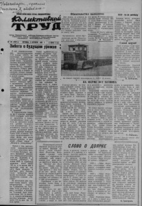 2 tu сШинл tT/ ^tUSu/ м ^ ~ т - ъ С Р ПРОЛЕТАРИИ ВСЕХ СТРАН, СОЕДИНЯЙТЕСЬ! 4C hxlU £knU l& H £U L 15С0 га за денаду Орган Карасукского райкома Коммунистической партии Советского Союза и районного Совета депутатов трудящихся Новосибирской области №120 (2922Д ПЯТНИЦА, 6 ОКТЯБРЯ 1961 Г, | ЦЕНА 2 коп. Забота о будущем урожае В эти знаменательные дни, предшествующие XXII съезду КПСС, на колхозных и совхозных полях не ослабевает трудовой накал. Труженики деревни, воодушевленные проектом новой Программы КПСС, стремятся порадовать Родину новы ми успехами в борьбе за создание обилия сельскохозяйственных продуктов в нашей стране. Хлеборобы колхозных и совхозных полей проявляют большую заботу о дальнейшем расширении производства зерна. Одним из важнейших резервов повышения урожайности зерновых и других сельскохозяйственных культур является ранняя зябь. Сегодня рапортуют о выполнении своих обязательств по вспашке зяби рабочие второй фермы совхоза им. Дзержинского, где управляющий М. Лиждвой. В Хорошинском совхозе на 4 октября поднято 10375 гектаров зяби или 45 процентов к плану. Организованно ведут работы по заготовке земли под урожай будущего года механизаторы Сту- деновского совхоза. Они только за первую пятидневку октября вспахали более 1200 га земли. Быстрее прошлогоднего готовят почву под посев яровых культур в колхозах „Новая семья“ и „Вперед к коммунизму". Вместе с тем, ряд колхозов непозволительно отстает с подъемом зяби. Особенно большую тревогу вызывают медленные темпы пахоты в колхозе им. Жданова и в совхозе „Октябрь". Из плана 2800 га ждановцы вспахали всего около 500 га, в то время, как в прошлом году на эту дату было поднято в полтора раза больше. Одну четвертую часть плана заготовили земли труженики совхоза „Октябрь". За последние дни снизили темпы взмета зяби механизаторы колхоза им. Куйбышева, им. Тельмана. Если за вторую декаду сентября в колхозе им. Тельмана было вспахано около 400 га земли, то за первую пятидневку октября вспахано всего лишь 12 га или по 24 га в сутки. Умело использовали технику во" время горячей уборочной страды хлеборобы’' ко л х о з а им. Куйбышева. Они в первой декаде сентября сумели поднять около 500 га доброкачественной зяби. Однако за последние дни заметно отстали. В третьей декаде вспахали всего 171 га. Ниже своих возможностей работают на заготовке земли труженики совхоза им. Дзержинского. Они занимают последнее место в соревновании среди совхозных механизаторов. Из плана 20 тысяч гектаров заготовлено немногим более 5 тысяч га. При наличии большого тракторного парка здесь есть все возможности ежедневн о поднимать до 500 га земли. Однако за последние пять дней _ по совхозу вспахано всего 862 га. Это потому, что плохо используется техника. Большая часть ее про- етаивает по различным техническим неисправностям. Зябь—одна из основ высокого урожая чстгер- того года семилетки. У нас есть все возможности так организовать дело, чтобы в каждом хо- ' зяйстве в короткие сроки завершить осеннюю пахоту. Это будет лучшим подарком XXII съезду КПСС. Обязательство выполнено Двух недель не остается до пое время. В сжатые агротех- открытия исторического съез- ннческие сроки вспахано 900 Большую заооту проявляют да партии. Хорошимитрудовы- га земли. Замечательно потру- колхозники ^ артели «Маяк миделами встречают эту дату дились механизаторы А. Се- Ильича» о 