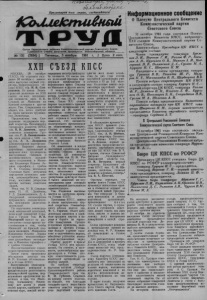 7 Т * & 0 W ^ H W / > 0 Пролетарии всех стран, соединяйтесьI 1СЬимкгпивнш Орган Карасукского райкома Коммунистической партии Советского Союза и районного Совета депутатов трудящихся Новосибирской области .№ 132 (2934) } Пятница, 3 ноября 1961 г. { Цена 2 коп. XXII СЪЕЗД КПСС МОСКВА, 30 октября (ТАСС). На утреннем заседании 30 октября с заявлением выступил первый секретарь Ленинградского обкома КПСС тов. И. В. Спиридонов. От имени Ленинградской делегации на XXII съезде он внес предложение перенести прах И. В. Сталина из Мавзолея на Красной площади в другое место. Тов. Спиридонов сообщил, что этого требуют на своих митингах трудящиеся Ленинграда. Предложение тов. Спиридонова поддержали первый секретарь Московского городского комитета КПСС тов. П. Н. Демичев, представитель компартии Грузии тов. Г. Д. Джавахишви- ли, член партии с 1902 года тов. Д. А, Лазуркина (Ленинградская парторганизация). Выражая мнение партийных организаций и широких масс трудящихся, выступавшие говорили о несовместимости дальнейшего сохранения в Мавзолее Владимира Ильича Ленина саркофага с гробом И. В. Сталина, поскольку Сталиным были допущены нарушения ленинских заветов, злоупотребление властью, массовые репрессии против честных советских людей. Речи тов. И. В. Спиридонова, П. Н. Демичева, Г. Д. Джавахишвили, Д. А. Лазуркиной неоднократно прерывались аплодисментами, возгласами делегатов: правильно! По поручению ленинградской, московской делегаций, делегаций компартий Украины и Грузии тов. Н. В. Подгорный вносит на рассмотрение съезда проект постановления о том, чтобы Мавзолей на Красной площади именовать Мавзолеем Владимира Ильича Ленина и признать нецелесообразным дальнейшее нахождение в Мавзолее саркофага с с гробом Сталина. Это постановление единодушно принимается съездом. Затем съезд продолжил обсуждение доклада тов. Ф. Р. Козлова об изменениях в Уставе КПСС. Выступавшие единодушно осуждали коварную и предательскую деятельность антипартийной группы, поддерживали предложения делегатов о том, что Молотову, Кагановичу, Маленкову нет места в рядах нашей партии, одобряли ленинский курс, взятый на искоренение последствий культа личности. От имени своих делегаций ораторы поддержали предложение о перенесении праха Сталина из Мавзолея в другое место. О ведущей роли коммунистов говорил первый секретарь Алтайского крайкома КПСС тов. А. В. Георгиев. После XX съезда партии численность краевой партийной организации увеличилась на 26 тысяч. В партийных комитетах края работает свыше 150 нештатных отделов и нештатных комиссий, 145 кабинетов политического просвещения на общественных началах. Создан и работает на общественных началах научно-исследовательский институт по изучению и освоению природных богатств Горного Алтая. Об изменениях в жизни партийной организации Казахстана говорил второй секретарь ЦК компартии Казахстана тов. Н. Н. Родионов. После XX съезда партии Коммунистическая партия Казахстана выросла почти на 100 тысяч человек, обогатилась новым опытом. В парторганизациях республики действует более 6 тысяч комиссий по осуществлению прав контроля хозяйственной деятельности администрации. Тов. Родионов высказывается за одобрение проекта Устава КПСС. Программа КПСС, заявил в своем выступлении первый секретарь Новосибирского обкома партии тов. Ф. С. Горячев, станет победоносным з