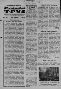 J / у ^ О С / L t <>Ъи. ПРИЛЕТАРИИ ВСЕХ СТРАН, СОЕДИНЯЙТЕСЬ! ФСЪчШкпш&шлй, Орган Карасуксного райкома Коммунистической партии Советского Союза и районного Совета депутатов трудящихся Новосибирской области №136 (2938)| СРЕДА, 15 НОЯБРЯ 1961 Г. | ЦЕНА2 кол. ** Обязательства должны быть выполнены Высокие обязательства в честь XX II съезда КПСС приняли на себя механизаторы нашего района, выступив инициаторами областного соревнования за сжатые сроки и высокое качество подготовки техники к 1962 сельскохозяйственному году. Решено отремонтировать тракторный парк к 15 января, прицепной инвентарь—к 23 февраля, комбайны, сенокосилки и другую уборочную технику — к 1 Мая. Сроки, прямо скажем, сжатые, но вполне реальные для выполнения. Они названы самими механизаторами, исходя из конкретных возможностей каждого хозяйства. У нас есть хорошо оборудованные мастерские, есть опытные кадры механизаторов. Быть инициаторами нечетно. Но это вместе с тем налагает высокую ответственность за выполнение обязательств. Сама по себе, без напряженного труда, без определенной организаторской работы победа не придет. В соответствии с обязательствами были и составлены графики ремонта техники в каждом. хозяйстве. Как же они выполняются? К сожалению, из хода ремонта нельзя сделать сколько-нибудь утешительных выводов. Прошло уже полтора месяца, а в колхозе им. Тельмана подготовлено только 2 трактора. Их техника ремонтируется в мастерской отделения „Сельхозтехники'. Условия вполне подходящие: мастерская хорошо оборудована, есть специалисты. Но колхоз никак не может сколотить бригаду ремонтников из 6 человек. Механик колхоза т. Гайдай прямо-таки расписывается в собственном бессилии сделать это и ссылается на отсутствие помощи со стороны председателя. Тов. Крупа признается, что до этого дела руки не дошли, и обвиняет т. Гайдая в безинициативности. Кивают друг на друга эти два высоких руководителя, а важное дело от этого страдает. Только 4 трактора из 20 по графику отремонтировано в колхозе »Маяк Ильича' .Причина здесь та же. Еще до 5 ноября загнали здесь в мастерскую 2 трактора, обмыли их, и вот уже почти 10 дней не прикасаются к ним руки механизаторов. Плохо ремонтируют технику в Студенов- ском совхозе. Главный инженер т. Крюков давно пришел к выводу, что если они не переведут работу мастерской на две смены, то не уло жатся в сроки. Вывод сделали, а на работу в две смены не переходят. Потому и отремонтировали только 6 тракторов из 31 по графику . Неудовлетворительно готовят технику в колхозах , Новая семья' и им. Жданова. Не проявляют необходимой расторопности в изыскании запасных частей и снабжении ими колхозов и совхозов работники отделения , Сельхозтехники", и это сказывается на темпах ремонта. У нас есть все возможности ликвидировать отставание на ремонте. Если руководители колхозов и совхозов, партийные организации, все механизаторы проникнутся чувством высокой ответственности за выполнение взятых обязательств, упущенное будет наверстано, и карасукские механизаторы останутся верны своему слову. Нужно твердо помнить, что от своевременной и качественной подготовки техники будет зависеть успех борьбы за высокий урожай в четвертом году семилетки. Этот успех мы должны завоевать! Пребываниетоварища Н. С. Хрущева в Узбекистане С АМ А Р К А Н Д , 11 ноября (ТАСС). Сегодня утром Первый секр