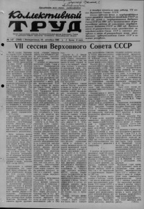 / v V 'W ' Пролетарии всех стран, соединяйтесьi i iQyUudcrnu£Hsui A № 1 4 7 ( 2 9 4 9 ) { Воскресенье, 10 декабря 1961 г. f Цена 2 коп. 8 декабря закончила свою работу VII сессия Верховного Совета СССР. Сессия приняла закон о государственном плане развития народного хозяйства СССР на 1962 год, закон о государственном бюджете Союза ССР на 1962 год и постановление об ут верждении отчета об исполнении государственного бюджета СССР за 1960 год. Приняла закон об утверждении основ гражданского законодательства Союза ССР и союзных республик и закон об утверждении основ гражданского судопроизводства Союза ССР и союзных республик. VII сессия Верховного На VII сессии Верховного Совета СССР, начавшейся в Москве 6 декабря после докладов заместителя председателя Совета Министров СССР, председателя Госплана СССР, депутата В.Н. Новикова и министра финансов СССР депутата В. Ф. Гарбузова с содокладами на раздельных заседаниях выступили председатель бюджетной комиссии депутат И. С. Сенин (Совет Союза) и председатели бюджетной и экономической комиссии депутаты М.А.Ненов и О. И. Иващенко (Совет Национальностей). Они говорили о том, что государственный план развития народного хозяйства СССР и государственный бюджет на 1962 год отражают задачи, поставленные XXII съездом КПСС,предусматривающие новый мощный подъем экономики и культуры, дальнейшее повышение народного благосостояния, укрепление обороноспособности нашей социалистической Родины. Председатели комиссий Совета Национальностей и Совета Союза предложили утвердить представленный Советом Министров СССР план народного хозяйства и бюджета страны на новый год с соответствующими изменениями и дополнениями. Затем начались прения по докладам, короткие, но яркие речи депутатов, рисуют широкую картину созидательного труда советских людей. В будущем году на новую, еще более высокую ступень поднимется экономика,, станет еще богаче духовная жизнь страны. Депутаты рассказывают об огромном энтузиазме коллективов предприятий, колхозов, совчозов, претворяющих в жизнь решения XXII съезда КПСС. Выступавшие в прениях подчеркивали, что советский народ полностью одобряет решительное осуждение XXII съездом КПСС чуждого марксизму-ленинизму культа личности Сталина и меры, принятые партией по восстановлению и дальнейшему развитию ленинских норм п ртийной жизни, принципов коллективного руководства во всех звеньях партии и государства. Разоблачение, окончательный идейный разгром антипартийной группы Молотова, Маленкова, Кагановича, других фракционеров открыли широкую дорогу для небывалого роста инициативы, политической и трудовой активности народа. 7 декабря на раздельных заседаниях Совета Союза и Совета Национальностей продолжалось обсуждение государственного плана развития народного хозяйства СССР и государственного бюджета СССР на 1^62 год. Все ярче разгорается пламя всенародной борьбы за претворение в жизнь великих предначертаний XXII съезда,—заявил на заседании Совета Союза депутат Р. Курбанов (Узбекская ССР). Трудящиеся республики поставили задачу довести производство хлопка к концу семилетки до 4 миллионов тонн. Уже сейчас узбекский народ производит этой ценнейшей культуры больше, Чем все капиталистические страны, вместе взятые, исключая США. Прекрасные перспективы открываются в новом году и для _ развитая промышленности, 