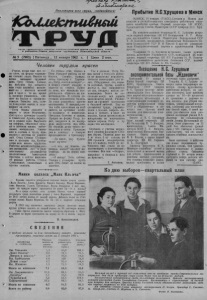Пролетарии всех стран, соединяйтесь) Орган Карасукского райкома Коммунистической партии Советского Союза и районного Совета депутатов трудящихся Новосибирской области № 5 (2963) | Пятница , 12 января 1962 г. | Цена 2 коп. Человек трудом красен Прибытие Н.С.Хрущева в Минск МИНСК, 10 января. (ТАСС).Сегодня в Минск для участия в республиканском совещании работников сельского хозяйства прибыл Первый секретарь ЦК КПСС, Председатель Совета Министров СССР товарищ Н.С. Хрущев. На минском вокзале товарища Н. С. Хрущева встречали первый секретарь ЦК КП Белоруссии К. Т. Мазуров, председатель Совета Министров Белорусской ССР Т. Я. Киселев, председатель Президиума Верховного Совета Белорусской ССР В. И Козлов и другие руководители Коммунистической партии и правительства Белоруссии. Товарища Н. С. Хрущева встречали также руководитель делегации Украинской ССР, прибывшей на совещание, первый секретарь ЦК КП Украины Н. В. Подгорный и руководитель делегации Литовской ССР, первый Утром, когда еще все село спит, на ферму торопливо спешат люди. Вместе со всеми начинает трудовой день Петр Новак. Словно по побудке (не забылись еще годы службы) вскакивает он с постели всякий раз в одно и то же время и, наскоро умывшись, спешит на ферму к своим питомцам. Завидев его, телята доверчиво мычат и вскакивают на ноги. Петр Новак родился и вырос в селе Морозовке. Отслужил срочную службу в Советской Армии, вернулся в родное село. Выучился на шофера, обзавелся семьей и потекла жизнь заботливая, интересная. Уважение и любовь к труду привились с детства от родителей. Отец Степан Степанович в колхозе им. Куйбышева всю жизнь трудится. Работал механизатором,позже несколько лет к ряду возглавлял руководство коллективом тракторной бригады, а сейчас выполняет разные работы. Степан Степанович уважаемый в артели человек. По стопам отца пошел и Петр. Никакой работы он не боялся. Скажет, бывало, летом бригадир т. Харченко:, Петр, сеять в ночную",— и шофер ставит машину и садится па сеялку. Пришла зима, все внимание потребовалось обратить на животноводство. В плохом состоянии находились телята. За ними ухаживали многие колхозники. И каждый,считая себя временным на этой работе, не проявлял особого внимания к животным. Начались болезни и падеж. Придет на ферму Петр, ходит, хмурится и, не выдержав, выругается про себя. Не терпела душа такого отношения к скоту. Приходит раз в контору и говорит председателю и бригадиру: —До каких пор будете телят мучить? —А что, не помочь ли решил, может машину поставишь да на ферму пойдешь? —И пойду! Хоть сейчас. Только с уговором: пусть мой ЗИС стоит до весны на линейке. Так и решили. Петр Новак начал с того,что добился от правления хорошего, теплого помещения для телят. Оборудовал его, корыта поставил, трубы, шланги достал и, как выражается он сам, внедрил малую механизацию. Всего за несколько минут все корыта заполняются водой. Ухаживает за группой молодняка с большой заботой. Ему не составляет труда, управившись с делами, запречь лошадь и поехать в поле за кормом. Когда организовали воскресник по накоплению запаса кормов, Петр и ту задал тон молодежи. Бережно, с учетом кормового рациона расходует т.Новак корма. Телятам дает по 4 кг сена, 3 кг силоса, по 500 граммов концентратов. Все это вывело теля’т из истощения, они стали не замызганными, а упитанными, чистыми. Все о