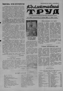 Зажглись огни агитпунктов Знаменательное событие в жизни нашей страны - выборы в Верховный Совет СССР—труженики крупнейшего в районе совхоза им. Дзержинского ознаменовывают новыми трудовыми достижениями. Коллективы рабочих ферм наметили новые рубежи в борьбе за создание материально-технической базы коммунизма. Почетное обязательство приняли дзержинцы: ко дню выборов рассчитаться с государством за первый квартал по молоку, мясу и яйцам. План первого квартала будет выполнен раньше срока—так заверили районный комитет партии и райисполком сельские труженики. Кроме того, они взяли обязательство выполнить план накопления снега на полях, вывезти 25 тысяч тонн навоза и довести до полных посевных кондиций семена. Деятельно готовятся к выборам сельские активисты. У агитаторов уйма дел. Нужно управиться с основной производственной работой, подготовить беседу и выступить перед избирателями. Тон молодым задает член КПСС пенсионерка Кошеварова с 8 фермы. Избиратели ее десятидворки регулярно собираются на беседы в ее квартире. Приятно отметить, что на 8 ферме политмассовая и производственная работа на должной высоте. Уже несколько раз выступил перед рабочими с короткими беседами в красном уголке, в агитпункте, на рабочих местах член парткома И. К. Крамской. В доходчивых, простых словах он излагает разные темы:о Положении о выборах, воспитании нового человека, задачах в строительстве коммунистического общества. На ферме, где управляющий т. Крамской, все дышит живым, злободневным. Хорошо оформлен красный уголок. В нем имеется стенд „Кто сегодня впереди", регулярно выходит сатирический листок „Свежий ветер". В красном уголке, огонек которого заманчиво кличет к себе сельчан, имеются материалы XXII съезда КПСС, газеты и журналы, материалы о выборах. Животноводы фермы добились хороших успехов в надоях молока. В сутки на корову они получают по 4 литра и более. Активно ведется агитационно-массовая работа на 2, 7,9 фермах. Конечно, есть некоторые фермы, где имеются погрешности. Это, прежде всего, недостаток наглядной агитации. Однако руководителям ферм указано об этих недостатках и они устраняются. Пользуясь удобным случаем, хочу напомнить нашим шефам, что они о нас забыли. Нельзя сказать, что летом на полевых работах коллектив райпотребсоюза не оказывал нам помощи. Она ощущалась. Но вот пришла зима, и забыли к нам дорогу торговые работники. Многое обещали сделать п® части оформления наглядной агитацией общественных мест.Секретарь парторганизации т. Семененко как-то даже заявил, что давно отправил и доску показателей, и стенд с материалами XXII съезда, и доску почёта. Но это оказались только слова. Не слова нужны от вас, шефы, а практическая помощь. И мы надеемся, что она последует. И Панарин, секретарь парткома совхоза им. Дзержинского. Пролетарии всех стран, соединяйтесь) Орган Карасукского райкома Коммунистической партии Советского Союза и районного Совета депутатов трудящихся Новосибирской области № 9 (2967) | Воскресенье, 21 января 1962 г. | Цена 2 коп. АГИТАТОРЫ ВЫШЛИ НА ДЕСЯТИДВОРКИ Деятельная подготовка к выборам в Верховный Совет- СССР развернулась в коллективе молочноконсервного комбината. Здесь в свободное время в цехах можно увидеть, как беседует агитатор с рабочими. Партийное бюро составило и утвердило мероприятия работы агитколлектива. 