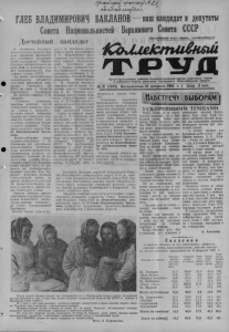 ГЛЕБ ВЛАДИМИРОВИЧ БАКЛАНОВ - - наш кандидат в депутаты Совета Национальностей Верховного Совета СССР Достойный кандидат В обстановке большого политического подъема прошло окружное предвыборное совещание представителей трудящихся Новосибирского избирательного округа №1.6 по выборам в Совет Национальностей Верховного Совета СССР. Под долго несмолкающие аплодисменты избирается почетный президиум совещания — Президиум ЦК КПСС во главе с Никитой Сергеевичем Хрущевым. На трибуне—офицер Т. В. Давыдов. —Солдаты, старшины, офицеры воинских частей Сибирского военного округа, —сказал т. Давыдов,— на своих общих собраниях кандидатом в депутаты Верховного Совета СССР единодушно выдвинули “командующего войсками Сибирского военного округа Глеба Владимировича Бакланова. Воины-сибиряки знают генерал-полкозника Г. В. Бакланова, как способного, инициативного военачальника, умелого воспитателя, организатора, чуткого, отзывчивого человека. За годы службы в рядах Вооруженных Сил Глеб Владимирович прошел путь от рядового до командующего военным округом. Тов. Бакланов —участник Великой Отечественной войны. За ратные подвиги он удостоен 16 правительственных наград и высокого звания Героя Советского Союза. Офицер Давыдов просит участников окружного совещания поддержать выдвинутую воинами кандидату* ру Глеба Владимировича* Бакланова. Много теплых слов вадКогда доярки фермы совхоза им. Дзержинского в с. Октябрьском читают газеты, то невольно заходит разговор о том: «А как нам лучше встретить предстоящий Пленум ЦК КПСС и выборы в Верховный Совет СССР?» И у всех у них одно желание—добиться хороших показателей в труде, высоких надоев молока. Трудятся они с огоньком, с молодежным задором. Недавно каждая из них перешла на дойку 35 — 36 коров. Помогает механизация—электродоильные аппараты, автопоение, подвесные и наземные дорожки. Но пока что дояркам трудно приходится. 35 коров на каждую—дело новое. Доярки упорно преодолевают трудности и настойчиво осваивают новый метод и организацию труда. НА СНИМКЕ: доярки во время перерыва за читкой газеты. Фото А. Боровкова. pec I'. В. Бакланова высказали в своих выступлениях В. П. Никифоренко—представитель коллектива целинного совхоза „Комсомольский" Алтайского края, А. Г. Бурдин—старший мастер Кузнецкого металлургического комбината, Г. М. Ситникова—студентка Новосибирского пединститута, Г. В. Кулачев —посланец горняков шахты имени Калинина города Прокопьевска, Е. И. Пащенко—колхозница артели имени Жданова Новосибирского района, П. Е.Тадыев—представитель от коммунистической организации Горно-алтайской автономной области. ; Горячо поддержав кандидатуру Г. В. Бакланова, они рассказали о трудовых подарках, которые готовят их коллективы к предстоящему дню выборов, об огромном энтузиазме, с которым трудящиеся городов и сел Сибири идут навстречу предстоящему Пленуму ЦК КПСС. Все выступающие говорили о своей беспредельной любви к Родине, Коммунистической партии, ее ленинскому ЦК, ведущим советский народ к коммунизму, о счастье жить и * * * Состоялось заседание окружной избирательной комиссии Новосибирского избирательного округа > 16 но выборам в Совет Национальностей Верховного Совета СССР. Присутствовали представители воинских частей Сибирского военного округа, предприятий, учреждений, колхозов, 