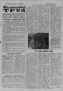 Навстречу весне Пролетарии всехстран, соединяйтесь! К СЕВУ ГОТОВЫ! GTJP^/Д ОРГАН КАРАСУКСКОГО РАЙКОМА КОММУНИСТИЧЕСКОЙ ПАРТИИ СОВЕТСКОГО СОЮЗА И РАЙОННОГО СОВЕТА ДЕПУТАТОВ ТРУДЯЩИХСЯ НОВОСИБИРСКОЙ ОБЛАСТИ № 35 (2993) | Пятница, 23 марта 1962 Г. | ЦЕНА 2 коп. Итоги выборов в Верховный Совет СССР Центральная избирательная комиссия подвела । окончательные итоги выборов в Верховный Совет СССР, состоявшихся 18 марта 1962 года. По данным окружных избирательных комиссий число избирателей, внесенных в списки избирателей, в целом по СССР составило 140 022 359 человек, из них приняли участие в выборах 139 957 809- человек, или 99,95 процента. Для проведения выборов в Совет Союза был образован 791 избирательный округ. Выборы состоялись во всех избирательных округах. За кандидатов в депутаты Совета Союза голосовало 139 210 431 человек, что составляет 99,47 процента участвовав-, ших в голосовании. Все выставленные кандидаты получили абсолютное большинство голосов и были избраны депутатами. Для проведения выборов в Совет Националь- j ностей было образовано 652 избирательных округа. | Выборы состоялись во всех избирательных округах I За кандидатов в депутаты Совета Национальностей голосовало 139 391 455 человек, что составляет 99,60 процента участвовавших в голосовании. Все выставленные кандидаты получили абсолютное большинство голосов и были избраны депу- тами. Центральная избирательная комиссия,рассмотрев материалы, представленные окружными избиратель ными комиссиями, на основании статьи 38 положения о выборах зарегистрировала избрание депутатов в Верховный Совет СССР по всем избиратель ным округам. Всего избрано 1443 депутата, в том числе 791 депутат Совета Союза и 652 депутата Совета Национальностей. Все избранные депутаты являются кандидатами народного блока коммунистов и беспартийных. Близятся дни, когда на поля выедут пахари и сеяльщики. Это будет первая послесъездовская весна. Воодушевленные решениями мартовского Пленума ЦК КПСС, хлеборобы колхоза „Маяк Ильича", по- боевому готовятся провести весенние полевые работы. Здесь полностью пересмотрена структура посевных площадей. В перечне планируемых к севу культур появились такие пропашные, как бобы, горох, свекла и другие. Две с половиной тысячи гектаров будет засеяно кукурузой. Это на тысячу гектаров больше, чем было в минувшем году. На двести га будет увеличена площадь посева льна. Агроном колхоза т. Якунин рассказывает: —Вспашку земли проведем за 13 дней. Сев зерновых на плещади 12 тысяч га—за 12 дней. На этой же площади проведем прикатывание почвы. В колхозе проведена большая подготовительная работа к весне. В кабинете секретаря парторганизации т. Коваленко висит график ремонта тракторов и сельхозтехники. На нем густо раскрашены колонки с надписью: „октябрь", „ноябрь". Это значит в колхозе уже с осени приступили к ремонту техники. Первыми ремонт завершили механизаторы пятой бригады. Хорошо на ремонте потрудились под руко водством помощника бригадира В. Ильина трактористы Л. Ильницкий, А. Пашковский И. Цыберкин и другие. —Партийному бюро,—говорит т. Коваленко,—много пришлось поработать, чтобы ранее отстававшие с ремонтом техники 7 и 8 бригады подтянуть до передовых и добиться в целом по колхозу выполнения социалистического обязательства по досрочному завершению ремонта. Обязательство выполнено. В колхозе заверш