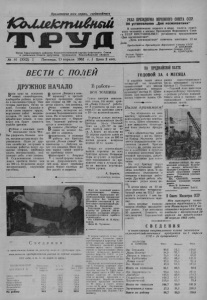 КОЛЛЕКТИВНЫЙ ТРУП, 13 апреля 1962 года, № 44 РЕШЕНИЯ ПЛЕНУМА ЦК КПСС - В ЖИЗНЬ! Комбайн для уборки картофеля, свеклы, моркови... МОСКВА, 8 апреля (Кор. ТАСС Д. Смирнов). «Желательно и нужно решить задачу уборки сахарной свеклы, картофеля, моркови одним комбайном»,—говорил Н. С. Хрущев на мартовском Пленуме ЦК КПСС. Эти слова стали боевым девизом конструкторов Всесоюзного научно-исследовательского института сельскохозяйственного машиностроения (ВИСХОМ). Мы прочитали их на полотнище, вывешенном здесь, в лаборатории. На пути к достижению этой цели достигнут первый успех. Приспособления, делающие комбайн «КГП-2» универсальным, выполнены в металле. Начальник отдела Г. Д. Петров и ведущий конструктор Г. Ф. Плешаков рассказали об этой работе: —Картофелеуборочный комбайн «КГП-2» создан в институте совместно с инженерами Коломенского тепловозостроительного завода имени Куйбышева. Впервые в прошлом году 700 таких машин уже работали на полях Московской области. Ими в совхозах убрано (практически без потерь) Лсоло 70 процентов всех посадок картофеля. Машина получила высокую оценку и рекомендована государственной комиссией к серийному выпуску. Теперь ипженеры создали к ней специальные сверные приспособления. Изменены лемехи. На них укреплены разные подкапывающие вилки. Вместо опорных катков поставлены колеса, обеспечивающие необходимое заглубление лемеха. Комбайн будет убирать картофель, сахарную свеклу, морковь, лук и некоторые другие культуры. Примечательно, что стоимость машины окупается в первый же сезон работы. В текущем году для различных районов Российской Федерации намечено выпустить две тысячи комбайнов «КГП-2». Часть из них будет оснащена новыми приспособлениями. Универсальный скоростной Липецк, 28 марта. (ТАСС). Изготовление опытной модели универсального скоростного трактора началось на Липецком тракторном заводе. Новая машина предназначена для выполнения различных сельскохозяйственных работ и, главным образом, для обработки пропашных культур. Она выгодно отличается от существующих образцов подобного класса своей высокой производительностью, большой проходимостью, повышенными скоростями и устойчивостью. Трактор может развивать скорость на полевых работах до 15 километров в час, а на транспортировке—до 36 километров. На нем предусматривается установить двигатель воздушного охлаждения мощностью 60 лошадиных сил. В отличие от обычного трактора это будет машина с четырьмя одинаковыми ведущими колесами. По-хозяйски используем землю (Окончание, нач. на 3-ей стр.) важнейшее направление в развитии нашего земледелия". Многпе колхозы и совхозы на больших площадях собирают высокие урожаи гороха. Кормовые бобы у нас уже занимают 131 тысячу гектаров. Особенно успешно выращивают их и но, чтобы каждый колхоз и совхоз создал у себя своеобразную фабрику удобрений, построил навозохранилища, жижесборники, наладил компостирование торфа, всевозможных хозяйственных отходов. Навозно-земляные компосты, приготовляемые по методу академика Т. Д. Лысенко, с Производственные управления в действии В Ростовской области создано’ десять территориальных производственных колхозно-с овхозных и совхозно-колхозных управлений. Сотр удники этих учреждений с первых же дней включились в работу. Они оказывают конкретную помощь колхозам и совхозам, выезжаю